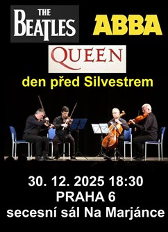 Beatles, ABBA a Queen den před Silvestrem se uskuteční dne 2025-12-30 v 18:30 v Praha, Secesní sál na Marjánce.