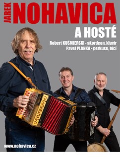Fanouškové Jarka Nohavici si již určitě zvykli, že jeho koncerty jsou samé překvapení, a vždy naprosto nově dramaturgicky sestavené a rozhodně se mají na co těšit! Na současných koncertech Jarka doprovází na akordeon a piano vynikající muzikant z Varšavy Robert Kusmierski a na perkuse a bicí Pavel Plánka z Plzně:-)