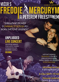 Talk show Petera Freestona o životě F. Mercuryho se uskuteční dne 2025-10-08 v 19:00 v Český Krumlov, Zámecká jízdárna.