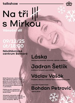 Talkshow: Na tři s Mirkou – vánoční díl se uskuteční dne 2025-12-09 v 18:00 v Humpolec, Návštěvnické centrum Bernard.