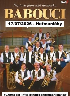 Babouci - nejstarší jihočeská dechovka se uskuteční dne 2026-07-17 v 19:00 v Heřmaničky, Háječek - letní parket.🎟️ Koupit vstupenkuBabouci – nejstarší jihočeská dechovka, hrající nepřetržitě od roku 1868. Pozvánka na jedinečný zážitek do letního kina Háječek - Heřmaničky - koncert pod širým nebem.Brázdí celou Českou republiku a vystupovali i v Rakousku, Německu, Belgii a na Slovensku. Jejich...